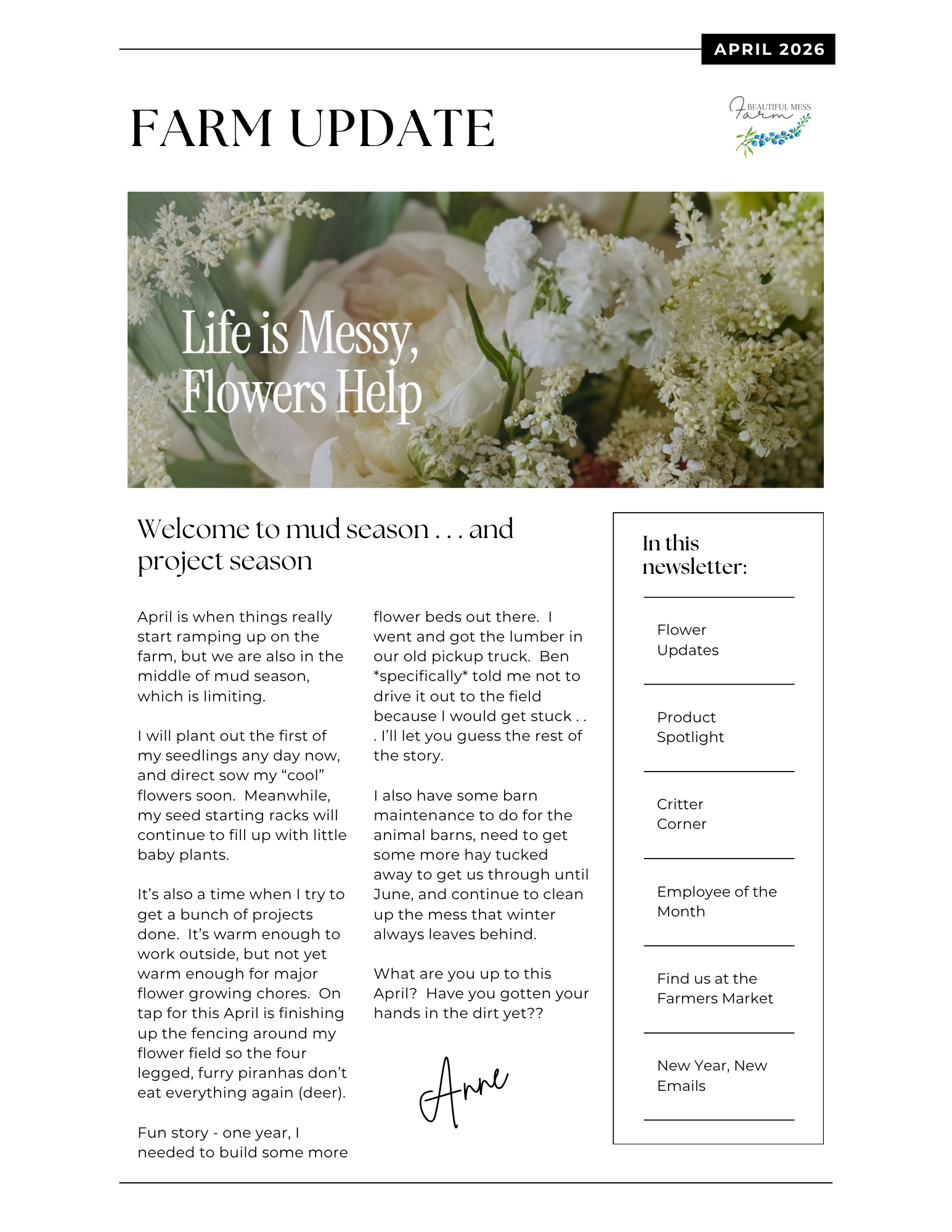 April, 2026 Farm Update