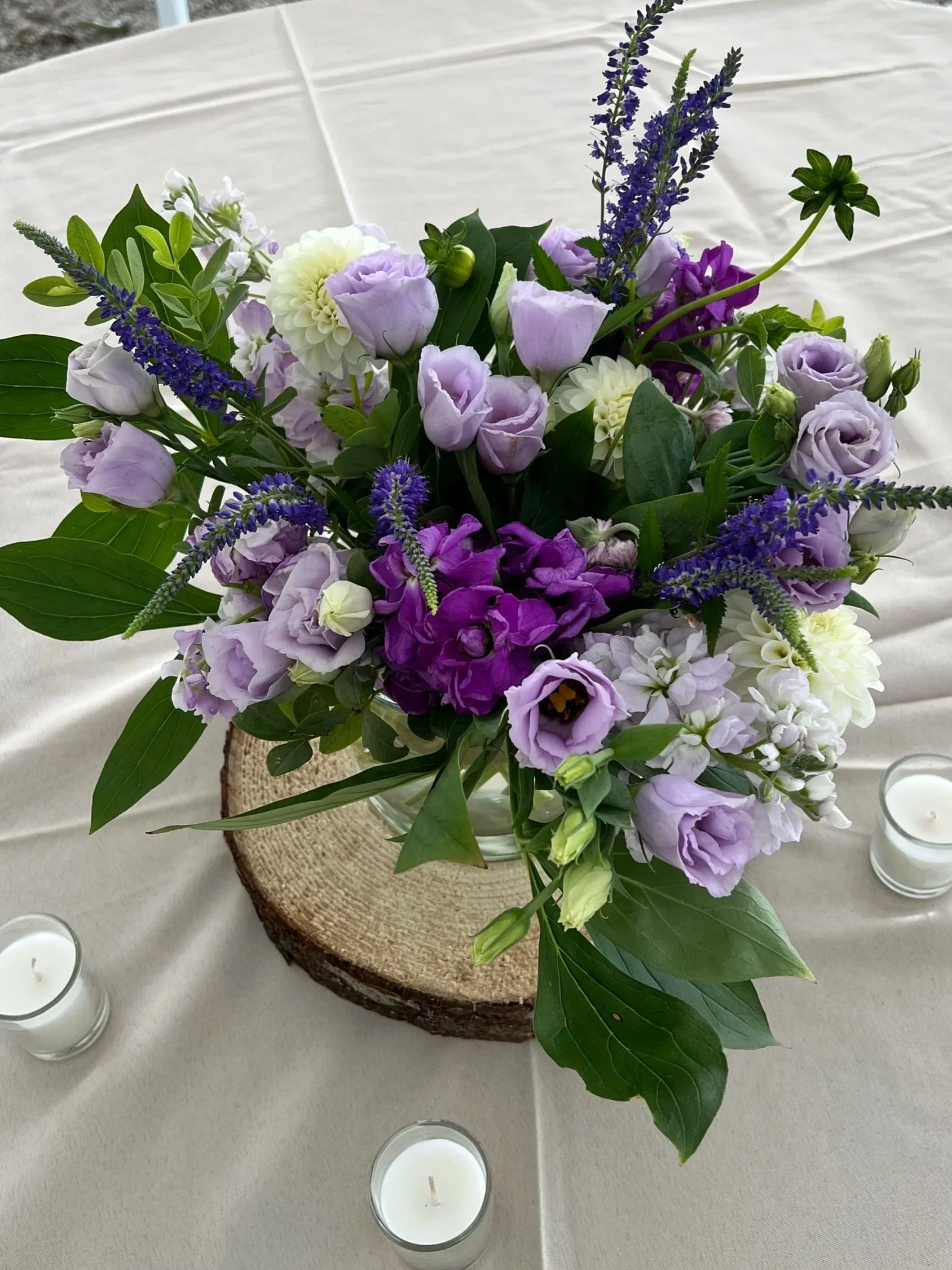 We hand pick a mixed bucket of focal flowers, fillers, greens, and other special materials for you to create with. We do our best to honor color pallet requests but cannot guarantee specific flowers.